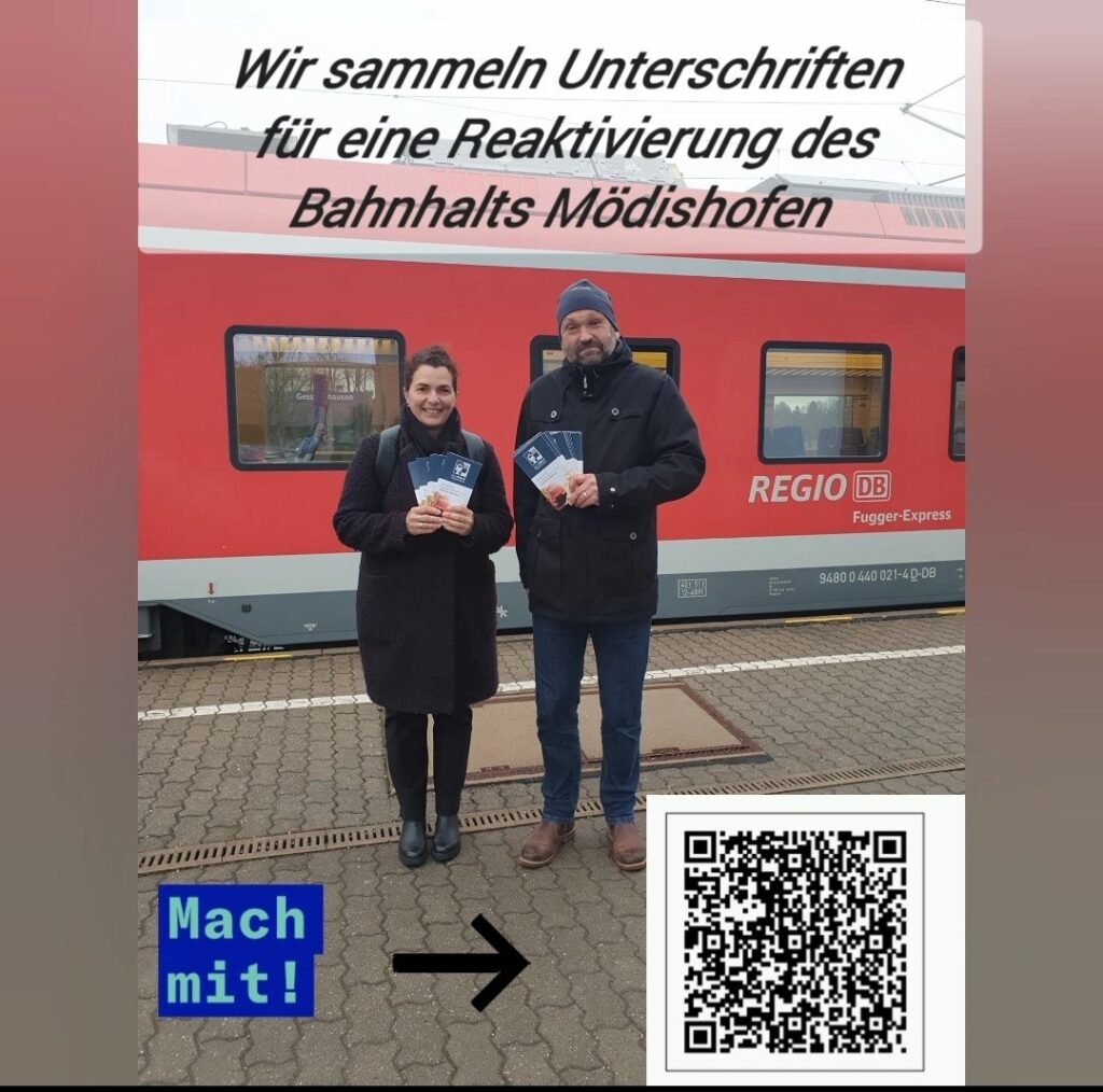 Die Wählergruppe ABU – Aktive Bürger Ustersbach setzt sich aktiv für die Wiederinbetriebnahme des Bahnhalts Mödishofen ein. Dieser Ortsteil von Ustersbach liegt an der Bahnstrecke Augsburg–Ulm. Ziel der Initiative ist es, dass Regionalzüge des Nahverkehrs wieder in Mödishofen halten und somit eine direkte Anbindung an die umliegenden Oberzentren Augsburg, Günzburg und Ulm gewährleistet wird. Die ABU unterstützt die Bestrebungen der Gemeinde Ustersbach, die den Bahnhalt als wesentlichen Bestandteil der kommunalen Infrastruktur und der Verbesserung der Mobilität ansieht.